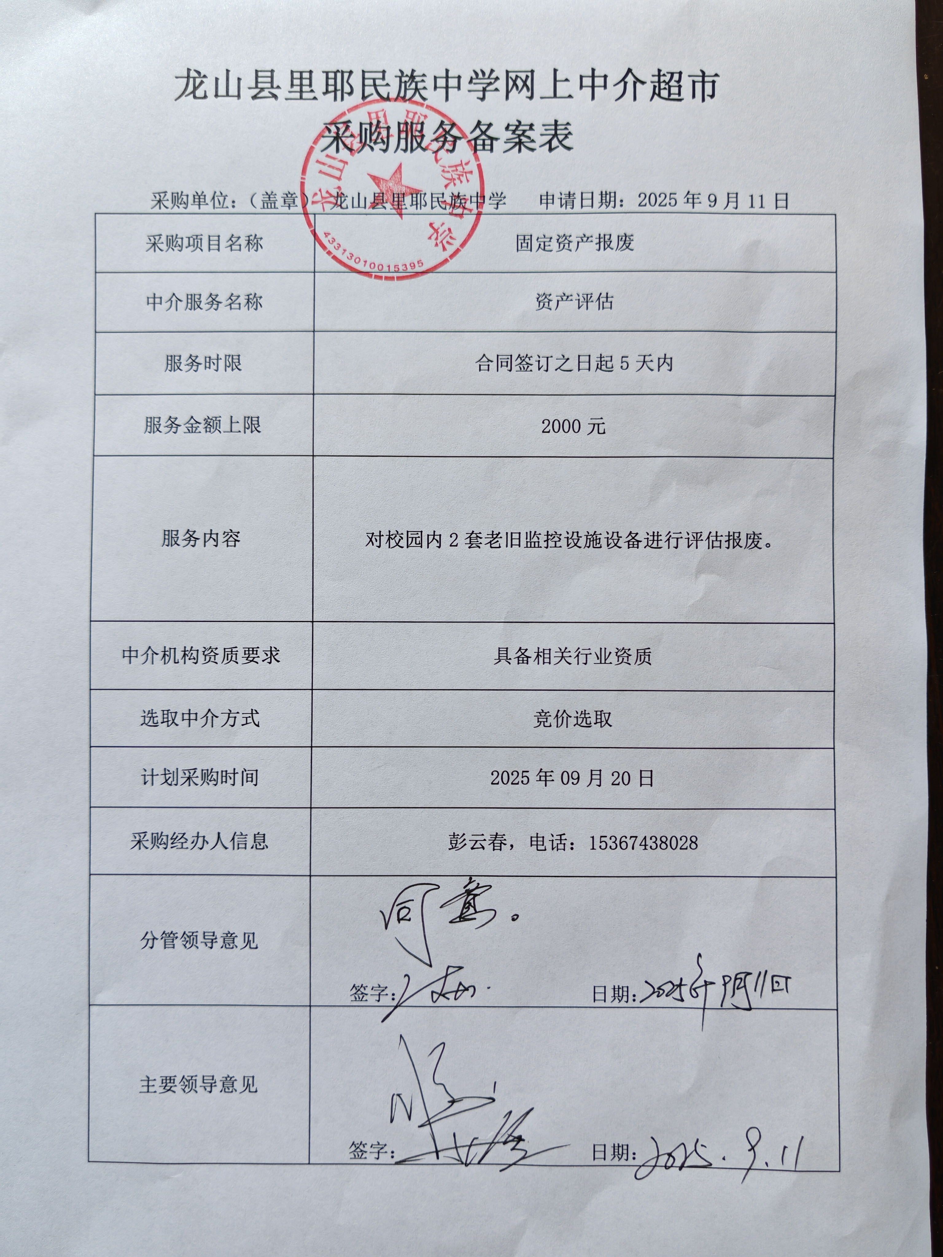 服务内容:对校园内2套老旧监控设施设备进行评估报废。